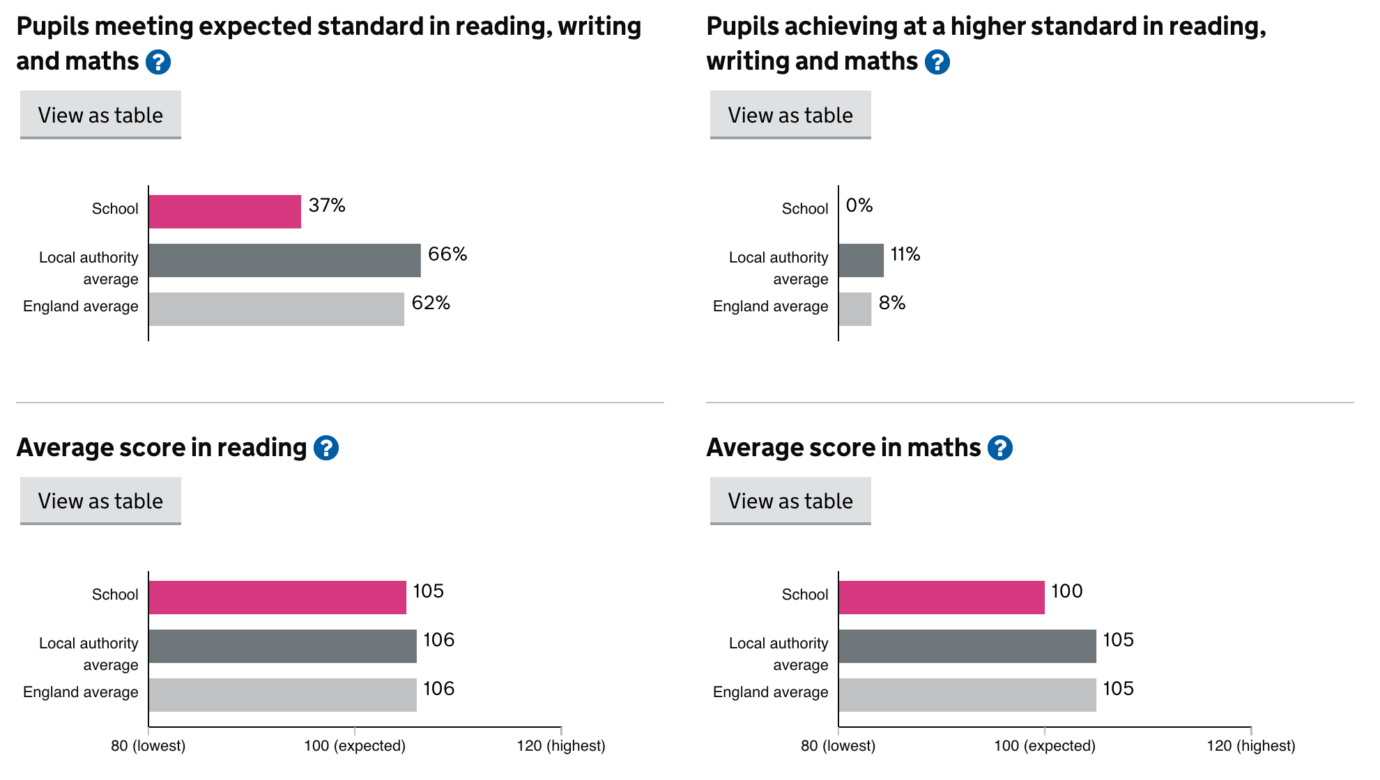 SAT’s (Standard Assessment Tests) are given at the end of Year 6. They are used to show your child’s progress compared with other children across the country. The expected scaled score for children is 100. Any child that has a scaled score of 110 or greater is judged to have greater depth in that subject.